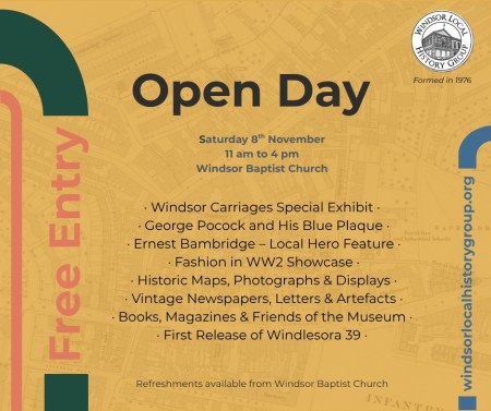 Now in its fifth exciting year, the WLHG Annual “Open Day” offers visitors a valuable opportunity to engage with the fascinating heritage of Windsor and many of its surrounding towns and villages. This FREE event is open to everyone and will take place on Saturday 8th November at Windsor Baptist Church, Victoria Street, SL4 1EH from 11am-4pm. Great for anyone interested in learning more about Windsor! Why not join us?
