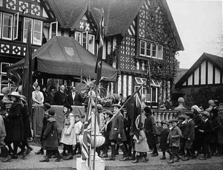 In November 1920, Sir Dhunjibhoy and Lady Frainy Bomanji hosted a major charitable event at The Willows, welcoming some 650 guests who had been bused in from Bachelors’ Acre. These photographs show the parade from The Willows to The Hatch of war widows, ex-servicemen who included Oliver Brooks VC, and orphans who each received a donation from Lady Frainy. On the dais with the Bomanjs were Princess Alice and Field Marshal Earl Haig.