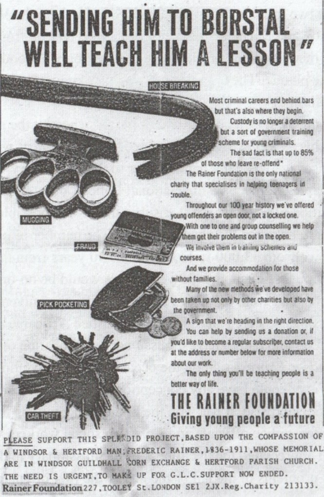 On Monday 6 December 1926 a plaque was unveiled in the corn market area of the Guildhall to a Windsor man who was not the Mayor or any other town official. It is still there and is the only memorial plaque outside the Guildhall. Most people would not recognise the name, but Frederic Rainer had the original idea that started the probation service in this country. Until 2007 his name was commemorated in a Foundation with its headquarters in London. This was then changed to Catch22, and that is the modern expression for what he saw going on and acted to stop.