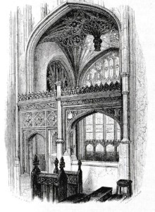 Vertue is also supposed to have been responsible for construction of Lupton’s Chauntry Chapel in Eton College Chapel. This was a small chapel built between two of the buttresses on the north side of the main College Chapel. The building of the Chauntry chapel was paid for by Roger Lupton, and it would appear that it was constructed during his lifetime rather than after his death. A College Audit book of 1514-15 mentions ‘a spout for the new chapel’ (spouts are normally associated with roofs) which would suggest that the chapel was nearing completion by this date and fits in with Vertue’s known time at Eton. The Chauntry Chapel has similar fan vaulting in other buildings associated with Vertue. It is similar to the vaulting found in Lupton’s Tower, as well as other known projects positively attributed to Vertue.