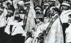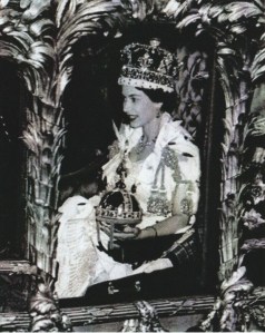 I am not sure how much I really understood of what was happening – it all seemed very similar to the fairyland of my storybooks – but I was excited about wearing a party dress and anticipated the treats of sandwiches, cakes and ice cream to come. There were union jacks and bunting – probably left over from the street parties held to celebrate the end of World War II. This was a time when the Royal Family exuded magic and mystery, and little girls longed to be Princesses. The horse-drawn coaches, the beautiful gowns, uniforms, crowns and tiaras simply reinforced that view and “Coronation” games made for many happy hours in the following weeks.