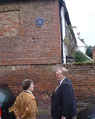 The unveiling ceremony was on Friday, 6th July 2007; however, the local historian and chair of the WLHG. Hester Davenport had collected the plaque a few days earlier and taken it home. On Friday in St Albans Street in Windsor, it was a sunny but very windy day. With Hester were: