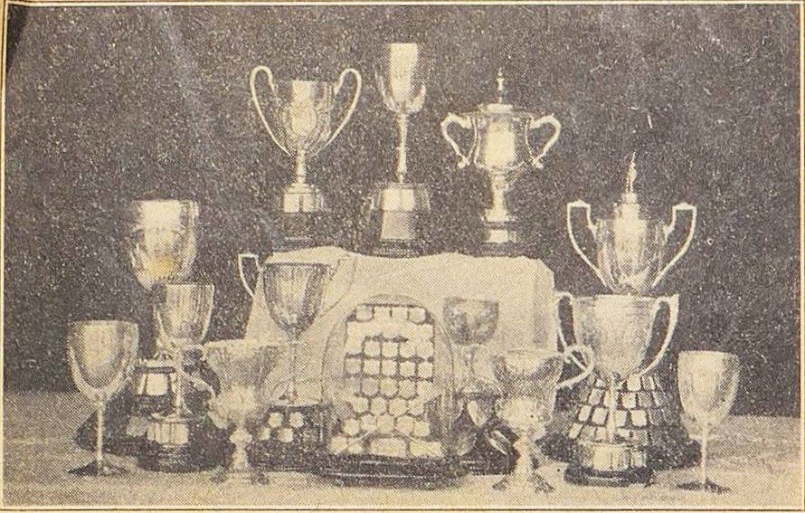 The handsome collection of trophies to be competed for annually by the members of the Eton Excelsior Rowing Club
