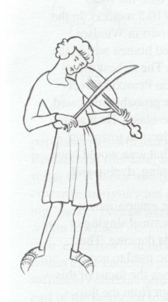 The designation of Henry as ‘the king’s minstrel’ seems to imply that he entertained the king as a solo performer rather than as part of a troop, possibly singing and playing a stringed instrument. In contrast, Thomas Haliday another Windsor resident was simply described in 1442, as ‘a minstrel’, in an acquaintance to a £10 bond to John Plummer. Thomas appears to have no royal connection and presumably made his living outside the castle. There is no reference to him owning property in the town. It seems that being a royal minstrel was a well paid profession however, as it allowed Henry to purchase two houses in Windsor from the mason William Hugin, who undoubtedly would have been involved in the extensive rebuilding of the upper ward of the castle, between 1350-68. These houses would probably have been joined into a single substantial, timber framed structure, having a frontage onto the road (following medieval custom) of two poles (10.5 metres). In the middle ages, many of those who attended court in Windsor Castle, either as servants or courtiers, owned houses within the town and Henry was typical in this respect. The richest member of the town community tended to live on Peascod Street and so Henry’s houses near Windsor Bridge, probably indicated that he was part of the town’s small ‘middle-class’. He was not quite rich enough to move into the best address in town, but had to be content with neighbours who in that area would have been engaged in the (noxious) trades of tanning, dyeing and butchery.