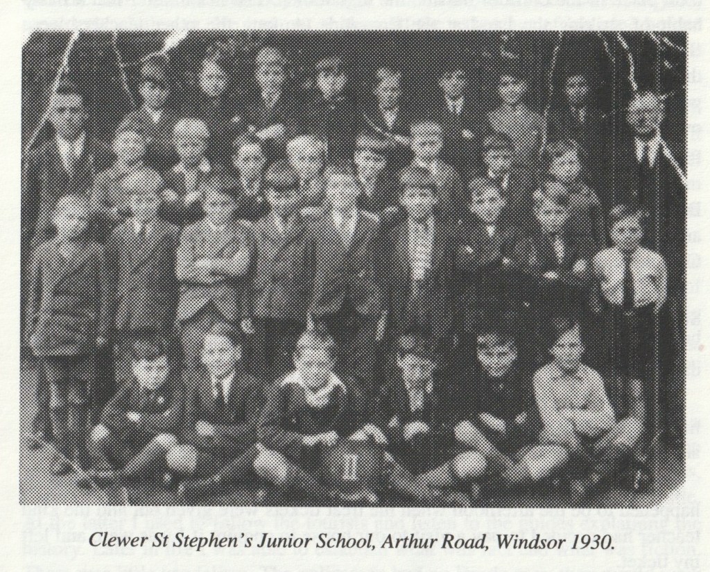 My schooldays commenced at Clewer St Stephens in Vansittart Road. The infants’ schoolroom was a corrugated iron hut situated in the playground and the teacher was Miss Bennett. I can remember little of these infant days but just two things come to mind: we had a beaker of Horlicks each day, and afternoons were spent sleeping on canvas beds.