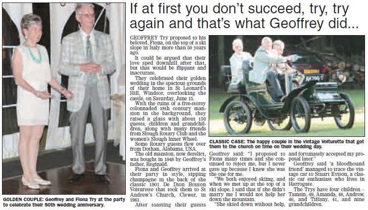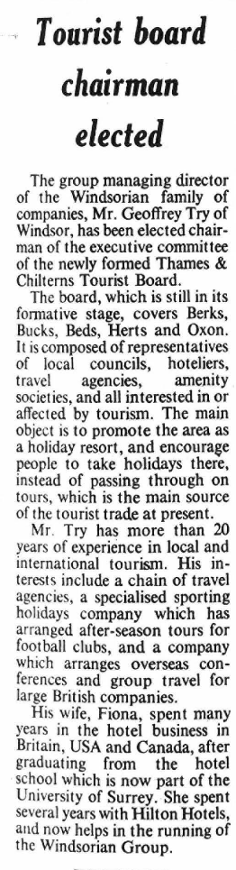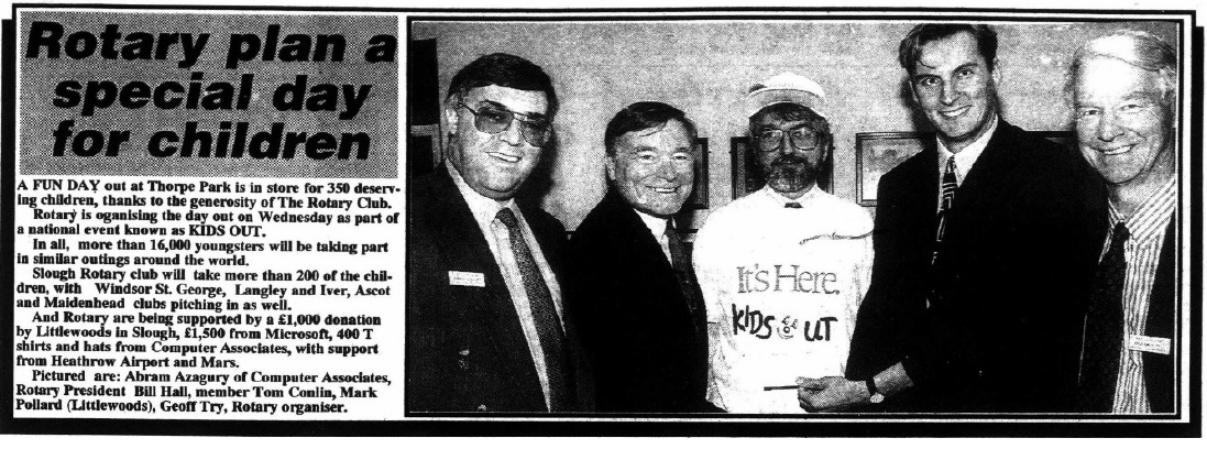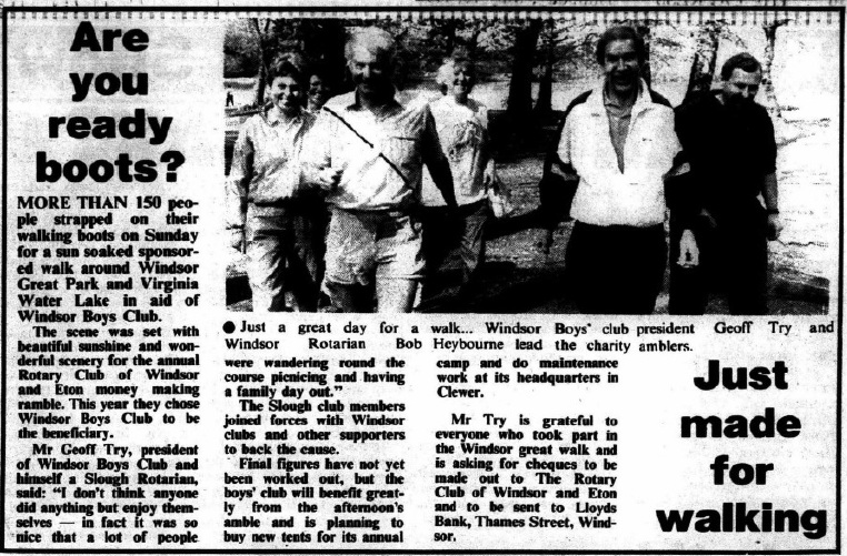 Geoff was a historian, Rotarian, sponsor, patron, volunteer, businessman, traveller, husband, father, grandfather, and great friend. Here are just some of his exploits recorded in the local newspapers over the years. With thanks to The Express and Maidenhead Advertiser for the use of these extracts. Please click on them to expand.