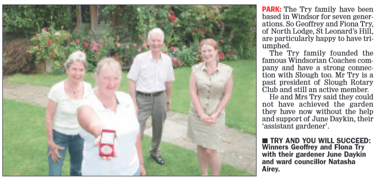 I recall that Geoff had a number of fascinating Concorde stories and memorabilia due to his business interests as a major travel agent in the area, quite apart from the famous Windsorian Coaches founded by his father, Reg Try in the 1920s. I also recall a magical Shakespeare evening in the grounds of his home on St Leonards Hill, recorded here. Geoff was a true English gentleman, and his generosity has added significantly to the history of the town in so many ways.