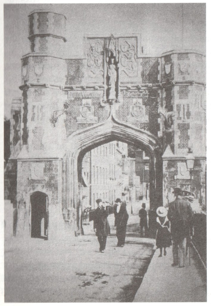 The remarkable ‘Porta Victoriana’, created by Alfred Young Nutt, architect to Queen Victoria for her Diamond Jubilee, looked like solid brick and stone but was actually made entirely from painted wood, canvas and plaster. Over the main arch a ‘statue’ of the Queen when young was flanked by the lion and the unicorn. The structure was decorated with coats of arms; the royal standard and the borough flags flew from its turrets, and at night it was illuminated by gas lamps held in wrought iron brackets. It was the most ambitious Jubilee decoration anywhere in the country and Windsor was extremely proud of it.