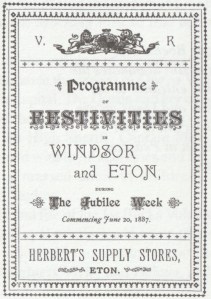 The Eton College Volunteers were drawn up in front of the Upper School and the Eton pupils lined the wall. As the carriages halted in front of the Volunteers the Queen was given a Royal salute and presented with another three addresses. At the Queen’s request, she spoke to the Vice-Provost of Eton, Rev J Wilder, who was 90 years old. He had been a pupil at the College at the time of George ITI’s Golden Jubilee and was one of those chosen to offer congratulations to the King. The procession, now including the Volunteers and the schoolboys, continued through the town of Eton and over Windsor Bridge.