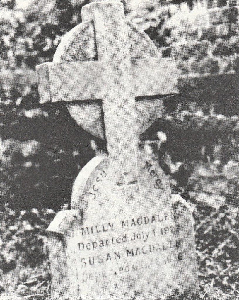 There were, however, some Penitents who instead of leaving the House of Mercy, wished to remain there to lead dedicated lives. These became Magdalens, in the words of T.T. Carter, “a dedication in a different way from that of a Sister of Mercy, yet having a beauty of its own, as a rose differs from a lily.” These women adopted ‘Magdalen‘ as their common surname, and the gravestones of Milly Magdalen and a number of her companions in Christ may be seen in Clewer churchyard.