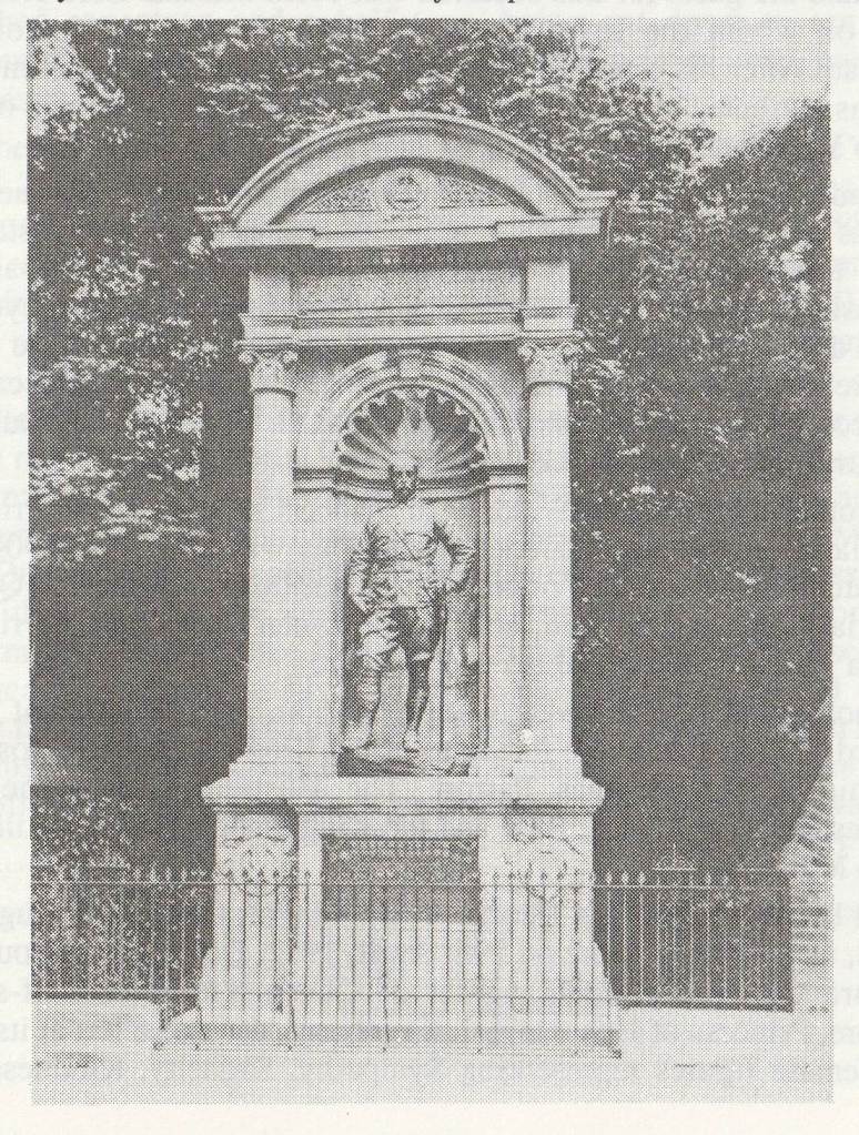 In a niche on the south side is the statue of the Queen’s consort, dressed in Roman military uniform. Underneath is the following inscription, translated thus: