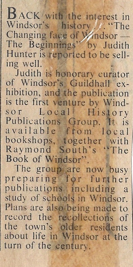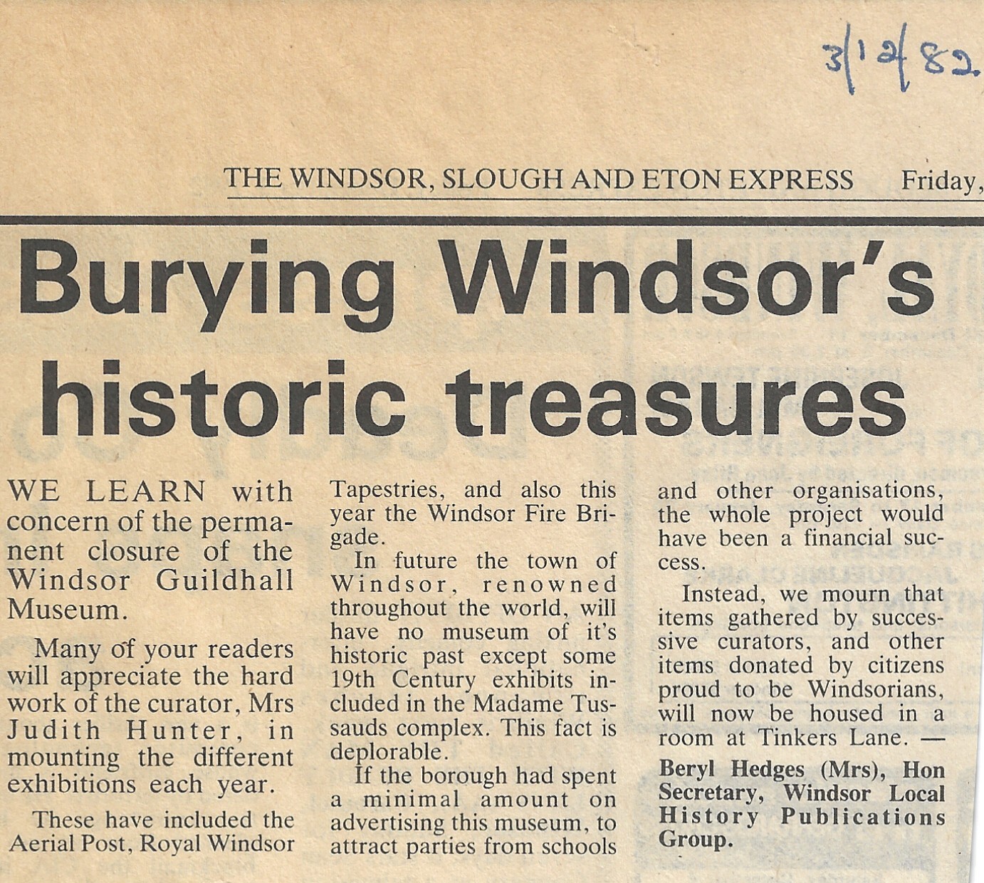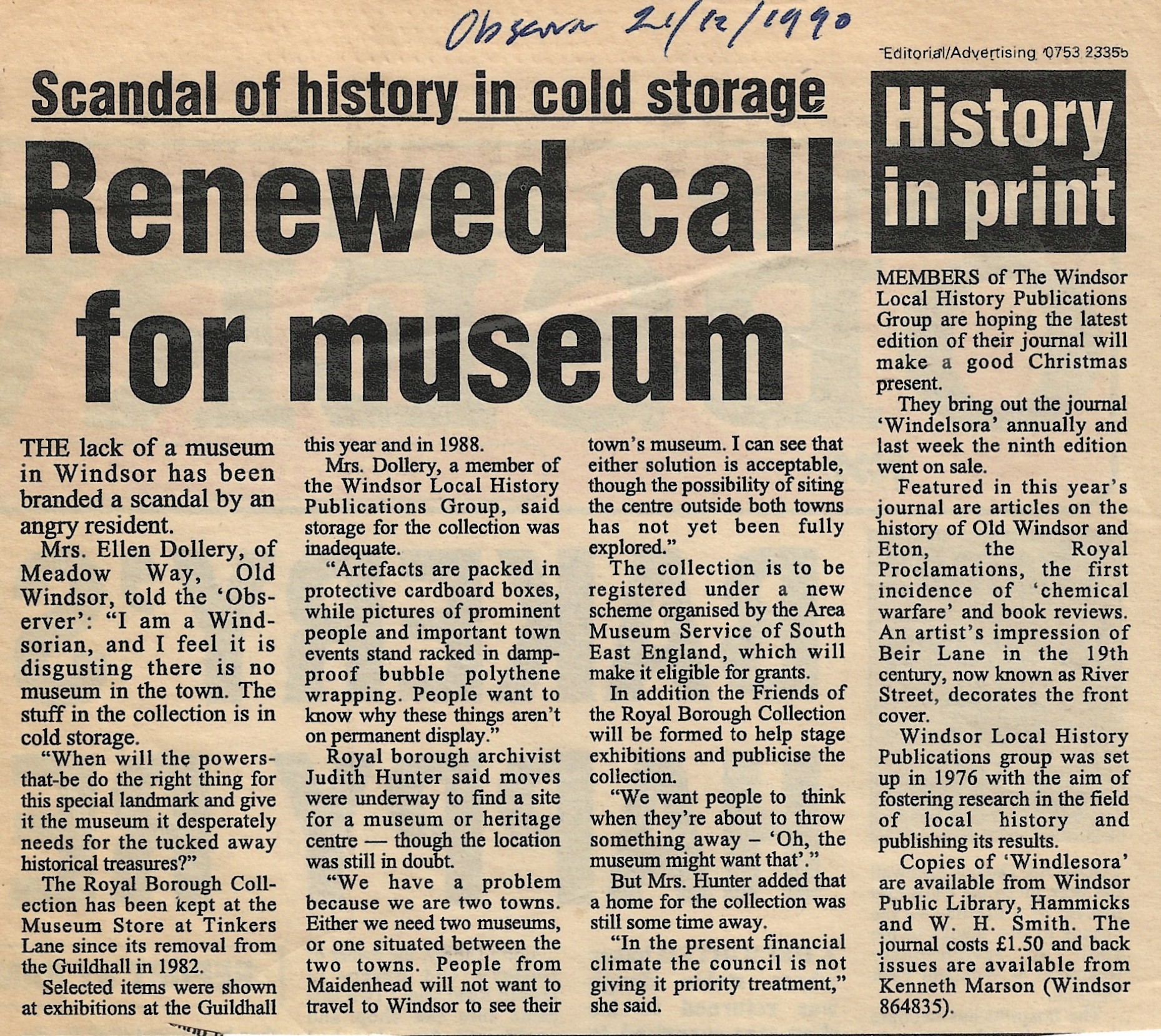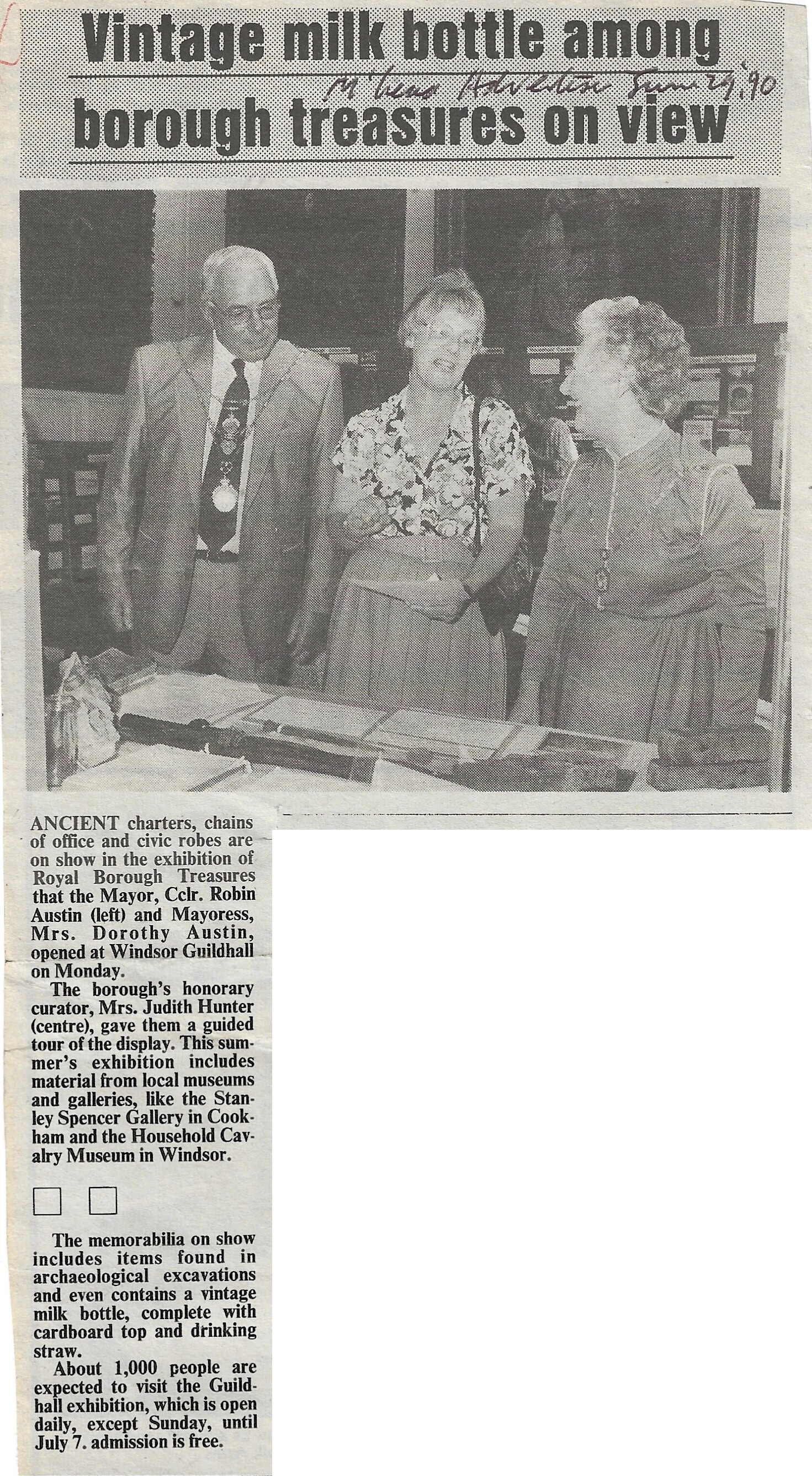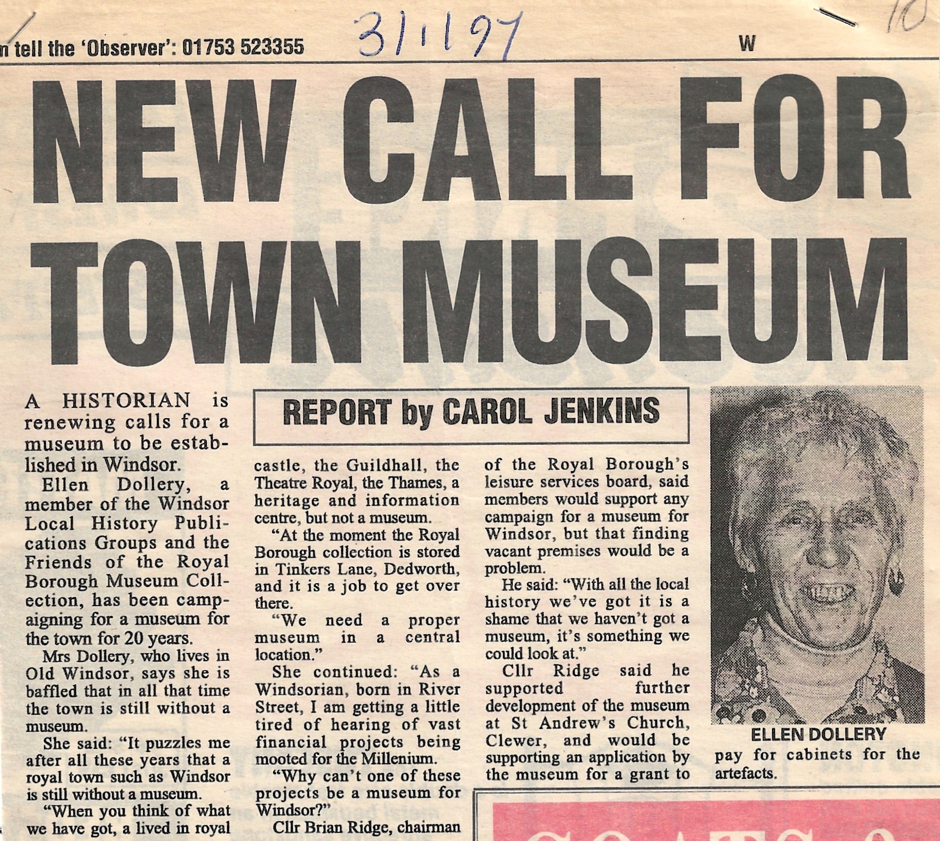 For over twenty years, Ellen collected newspaper clippings and photographs of the Group and also the Friends of the Museum. We have scanned these in and present them in the order they were found. We believe many of the clippings are from the Windsor & Eton Express.
