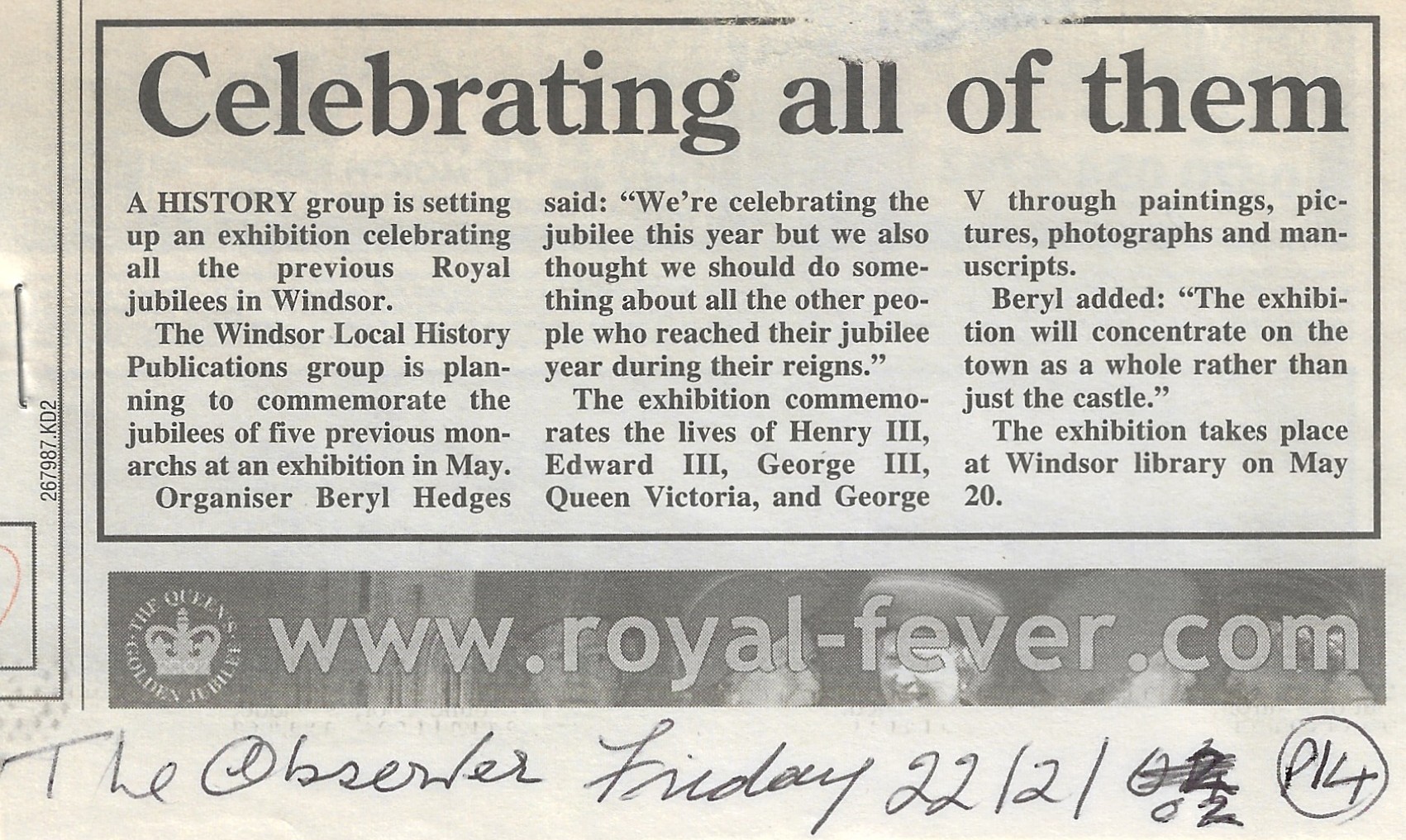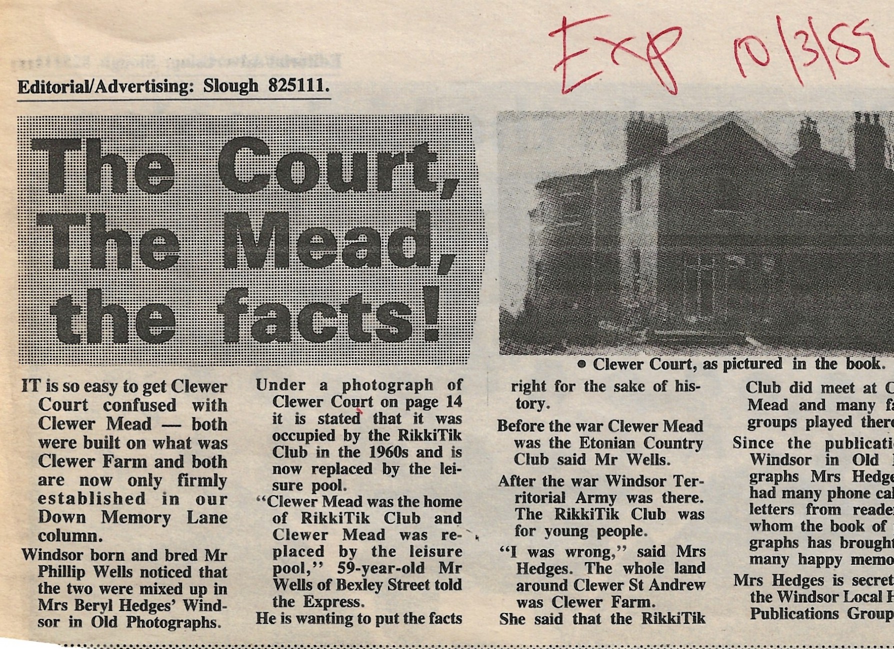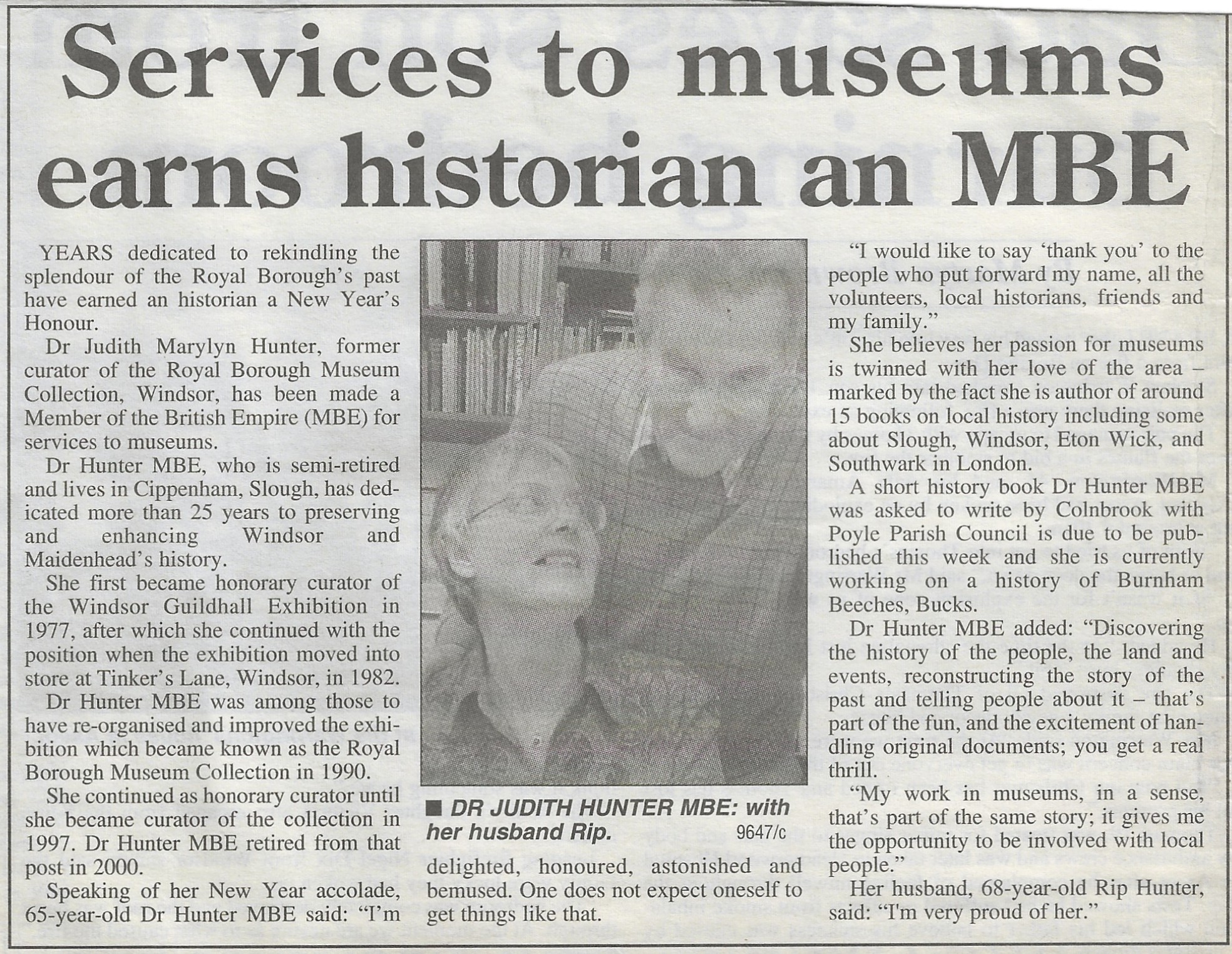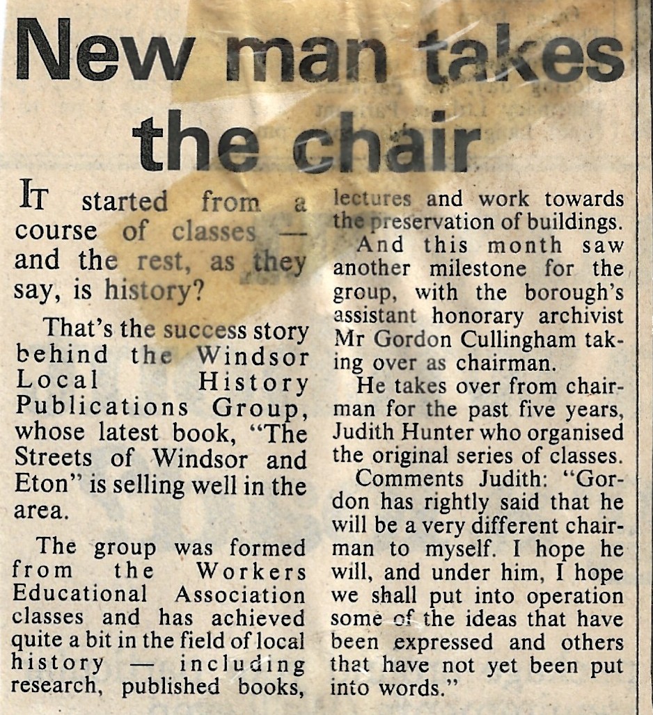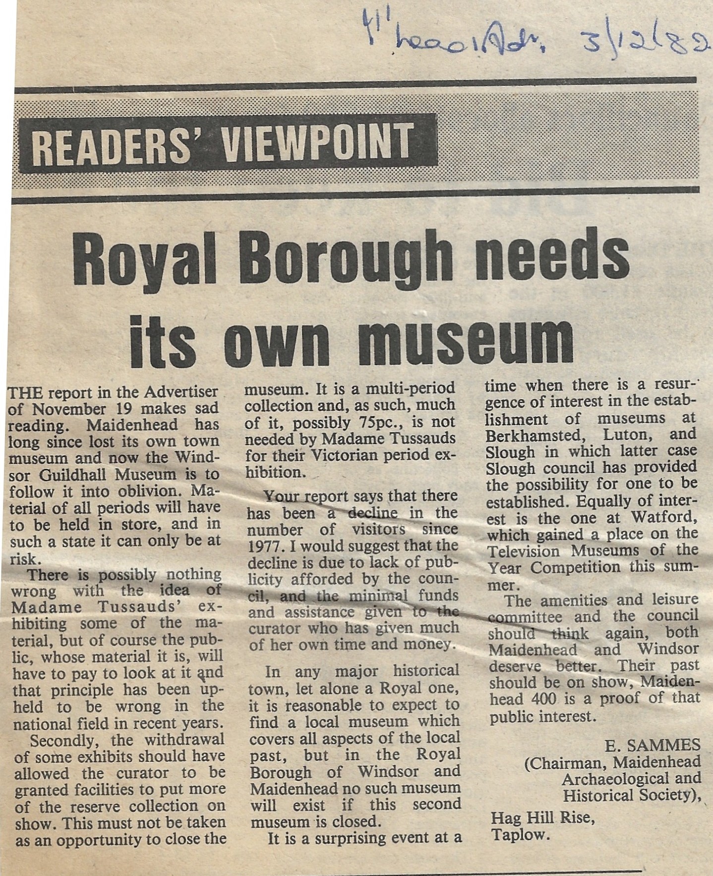 For over twenty years, Ellen collected newspaper clippings and photographs of the Group and also the Friends of the Museum. We have scanned these in and present them in the order they were found. We believe many of the clippings are from the Windsor & Eton Express.