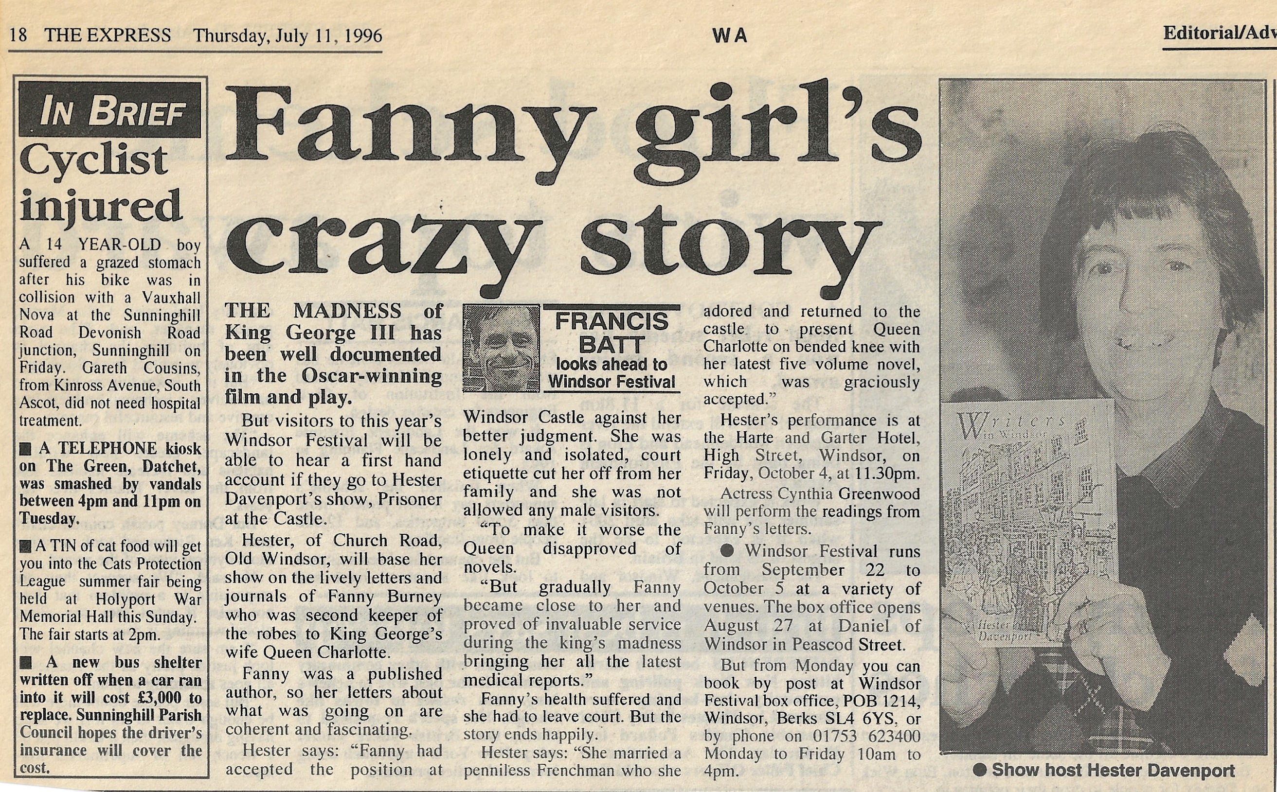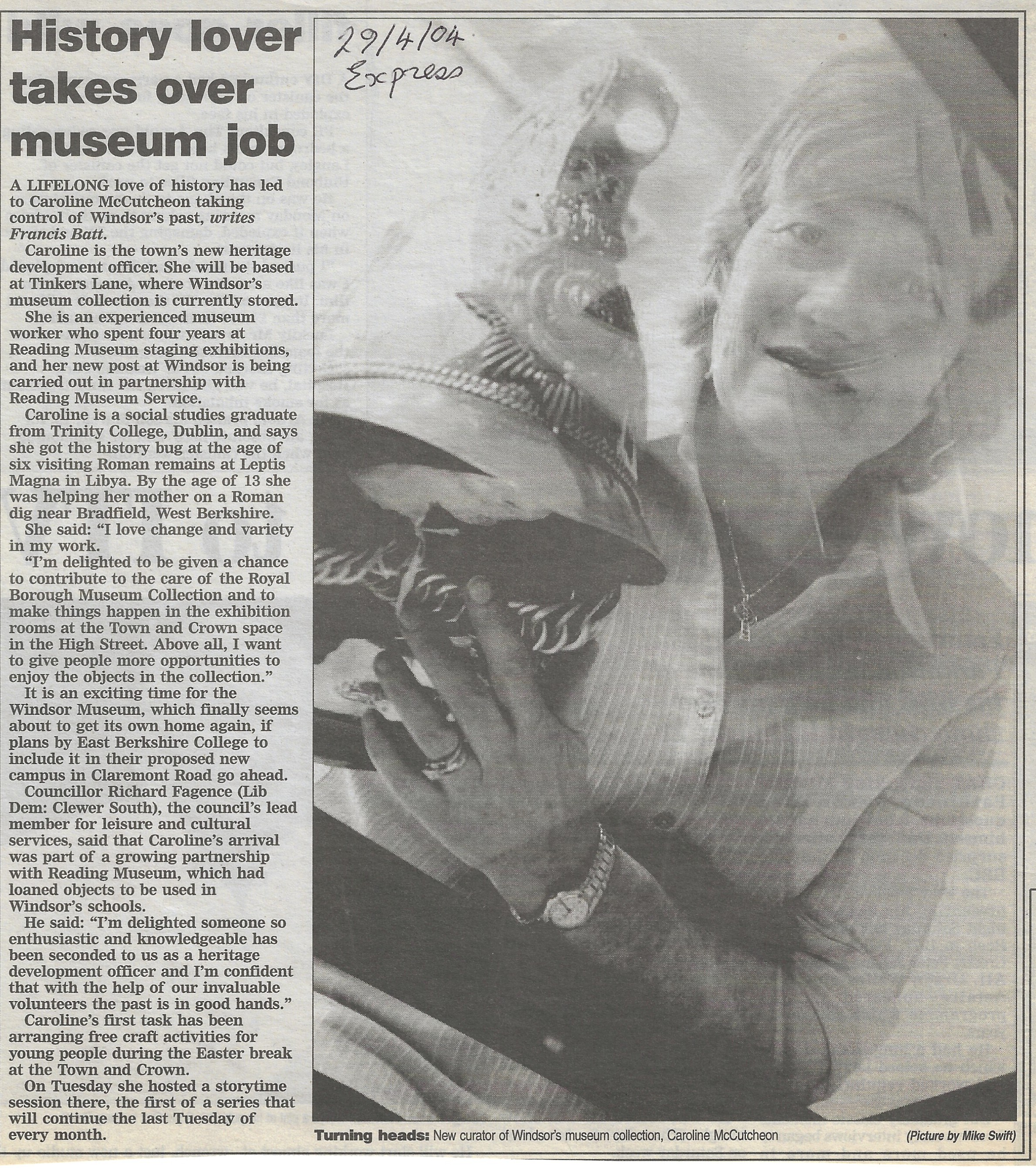 For over twenty years, Ellen collected newspaper clippings and photographs of the Group and also the Friends of the Museum. We have scanned these in and present them in the order they were found. We believe many of the clippings are from the Windsor & Eton Express.