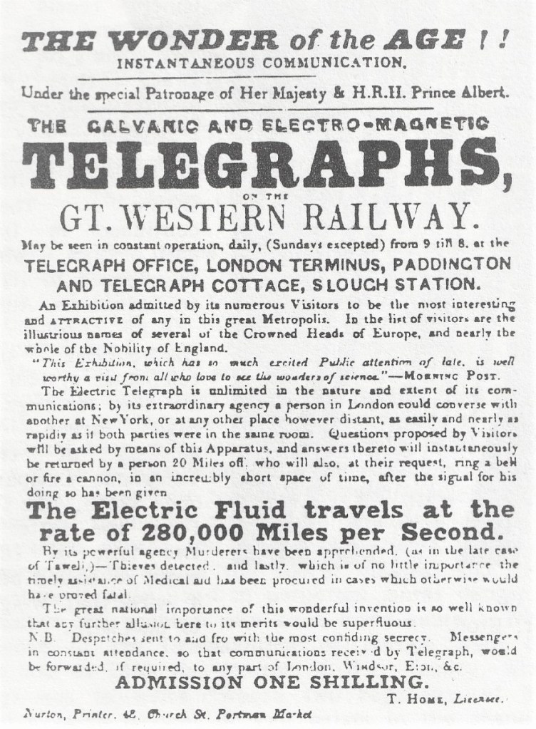 In 1837, William Cooke and Charles Wheatstone were responsible for the invention of the electric telegraph. The first line was in 1838 from Paddington to West Drayton, reaching Slough in 1839. It did not reach Windsor until 1849, the reason for the delay being that the route for the lines was intended to follow the proposed extension of the Great Western Railway to Windsor. Readers of Raymond South’s book “Crown, College and Railways” will be aware of the opposition to the railway by Eton College, so that the branch to Windsor did not open until October 8th, 1849.