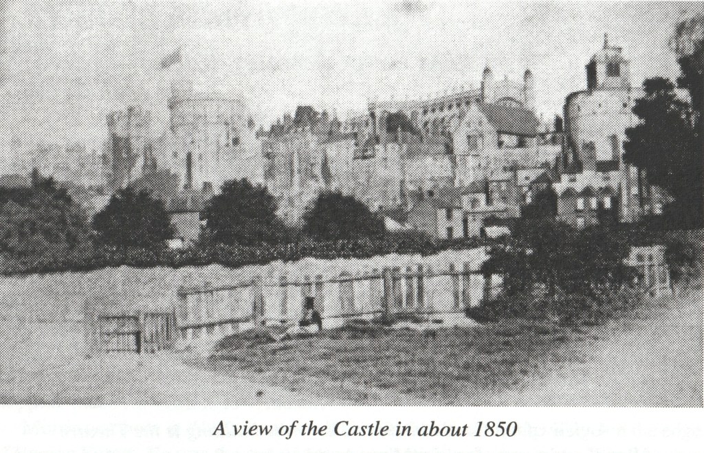Until the middle of the 19th century there had been little change in Windsor’s medieval streets. These contained buildings which were generally of only two stories, and the view of the castle across the gardens of the shop premises in Thames Street was famous, and very popular with painters and early photographers. The area known as the Goswells, once a common field, had been offered for sale for development, and the construction of one row of terrace houses (Bridgewater Terrace) had already been commenced parallel with the Central Station of the Great Western Railway terminus.