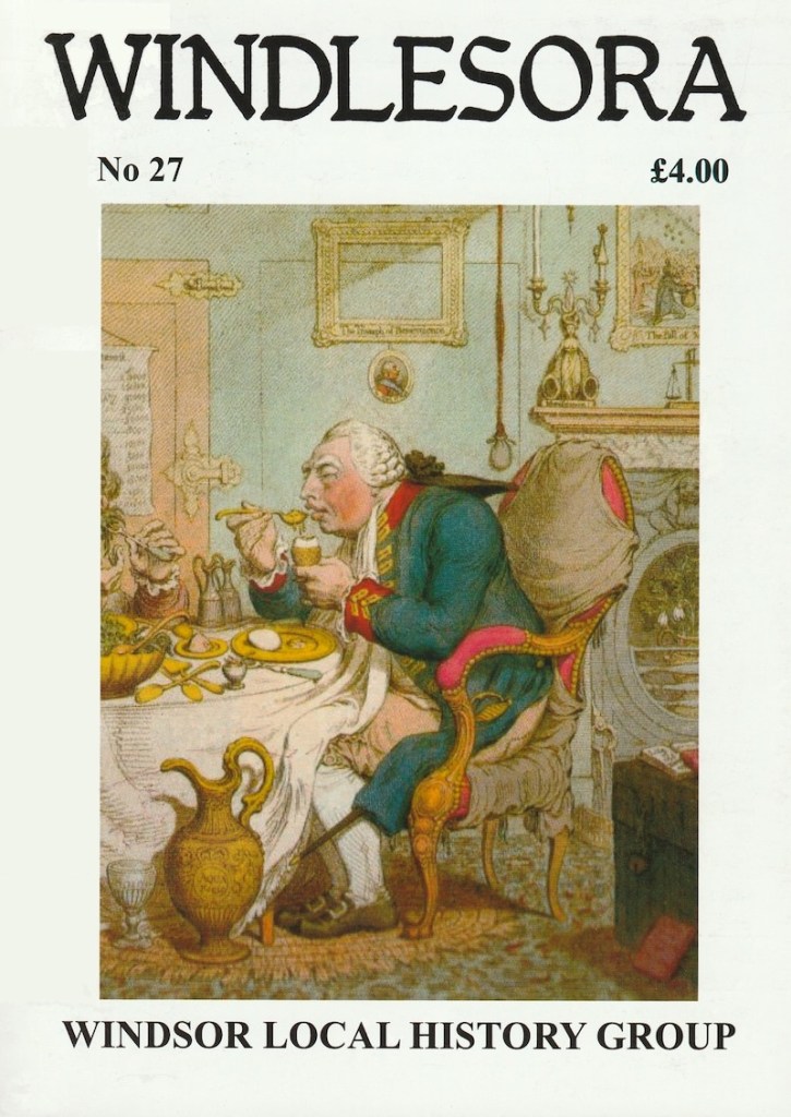 The front cover picture is a detail from a caricature by James Gilray (1757-1815) titled Temperance Enjoying s Frugal Meal (with Queen Charlotte tucking into sauerkraut) which is ridiculing the royal couple’s supposed penny-pinching ways. It was drawn in 1792.