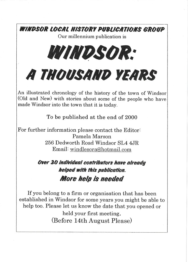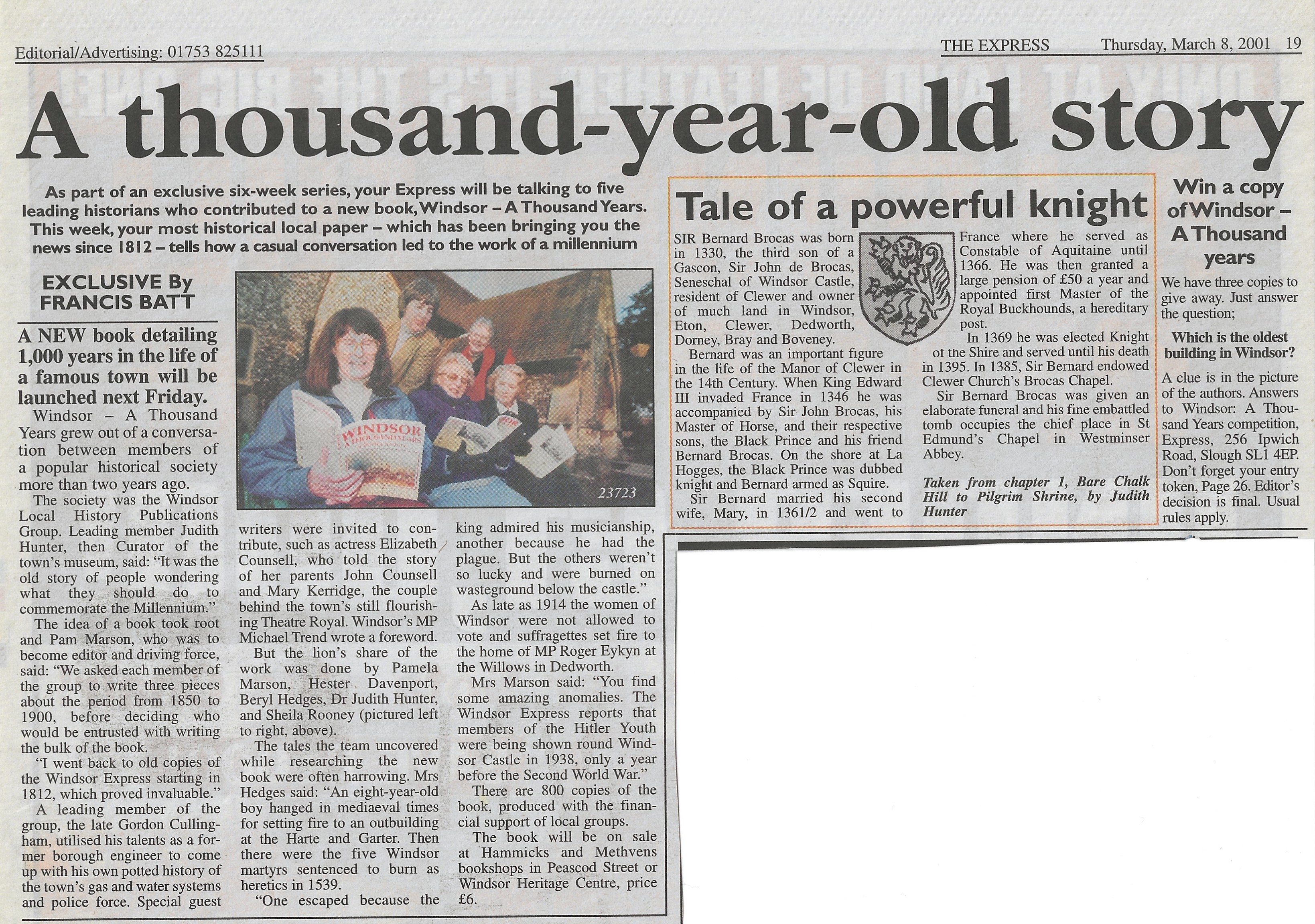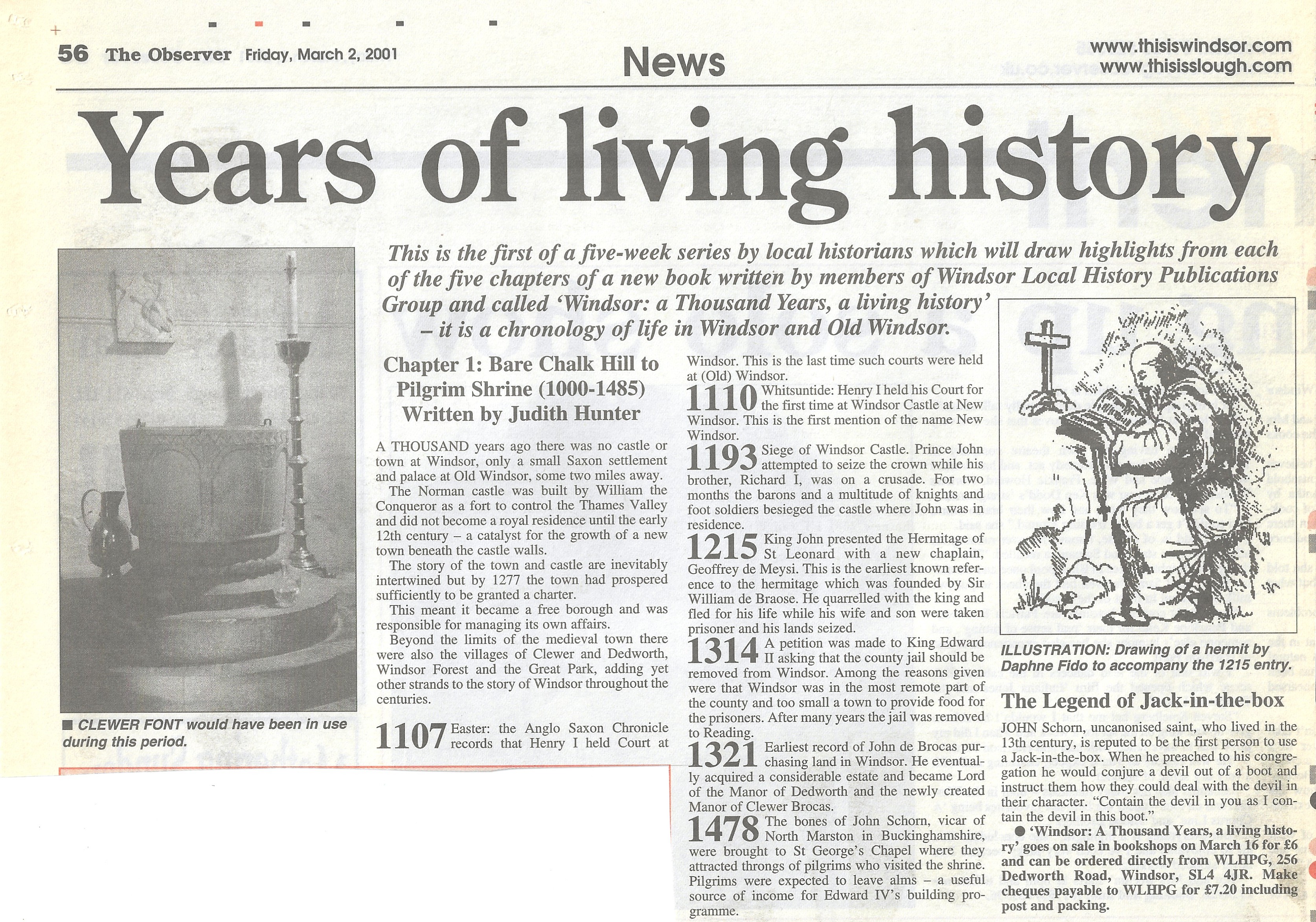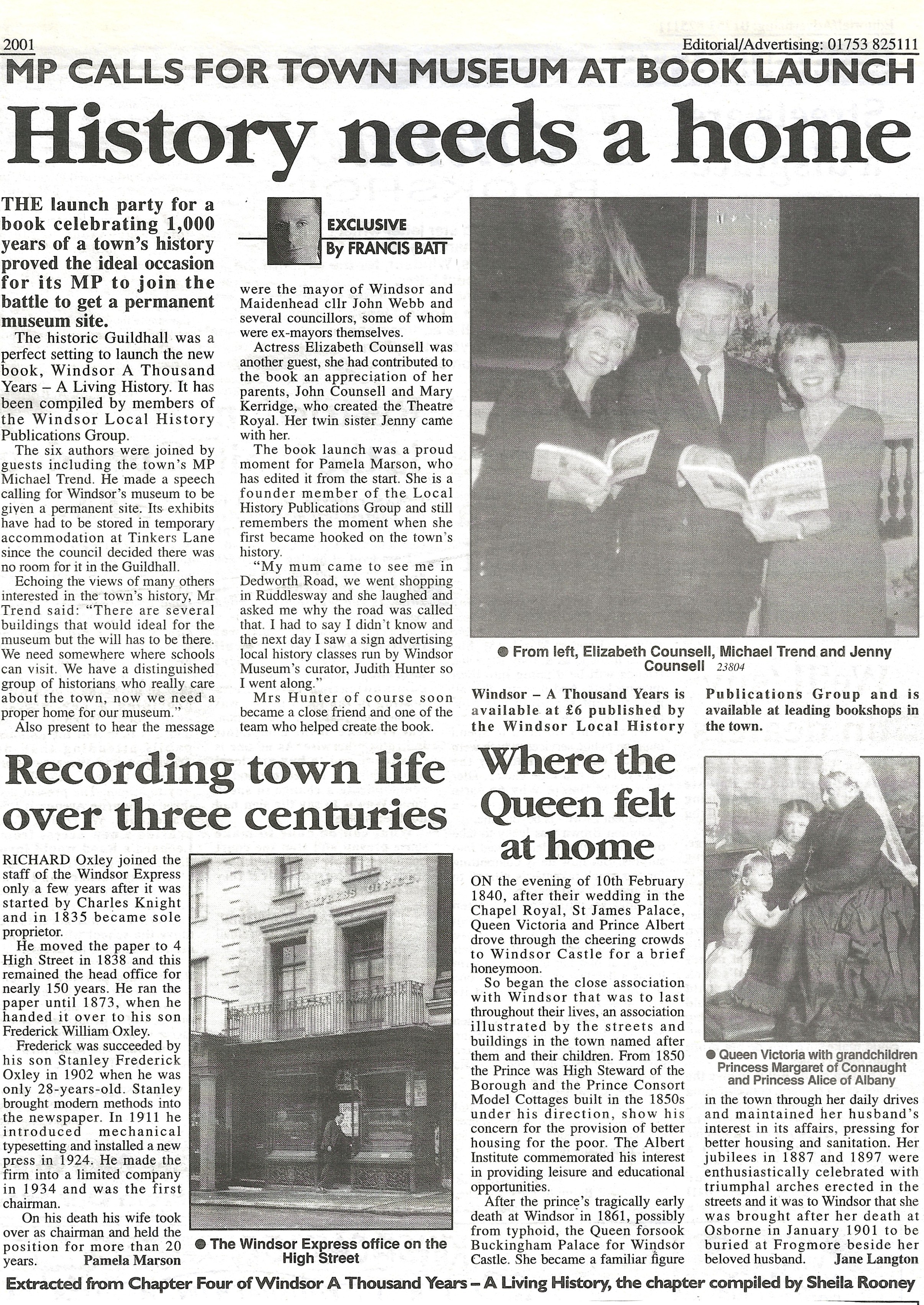 This page has been created from the WLHG scrapbook that remembers the successful launch of our book “Windsor: A Thousand Years”. Please just click on an image to expand it to make it more legible.