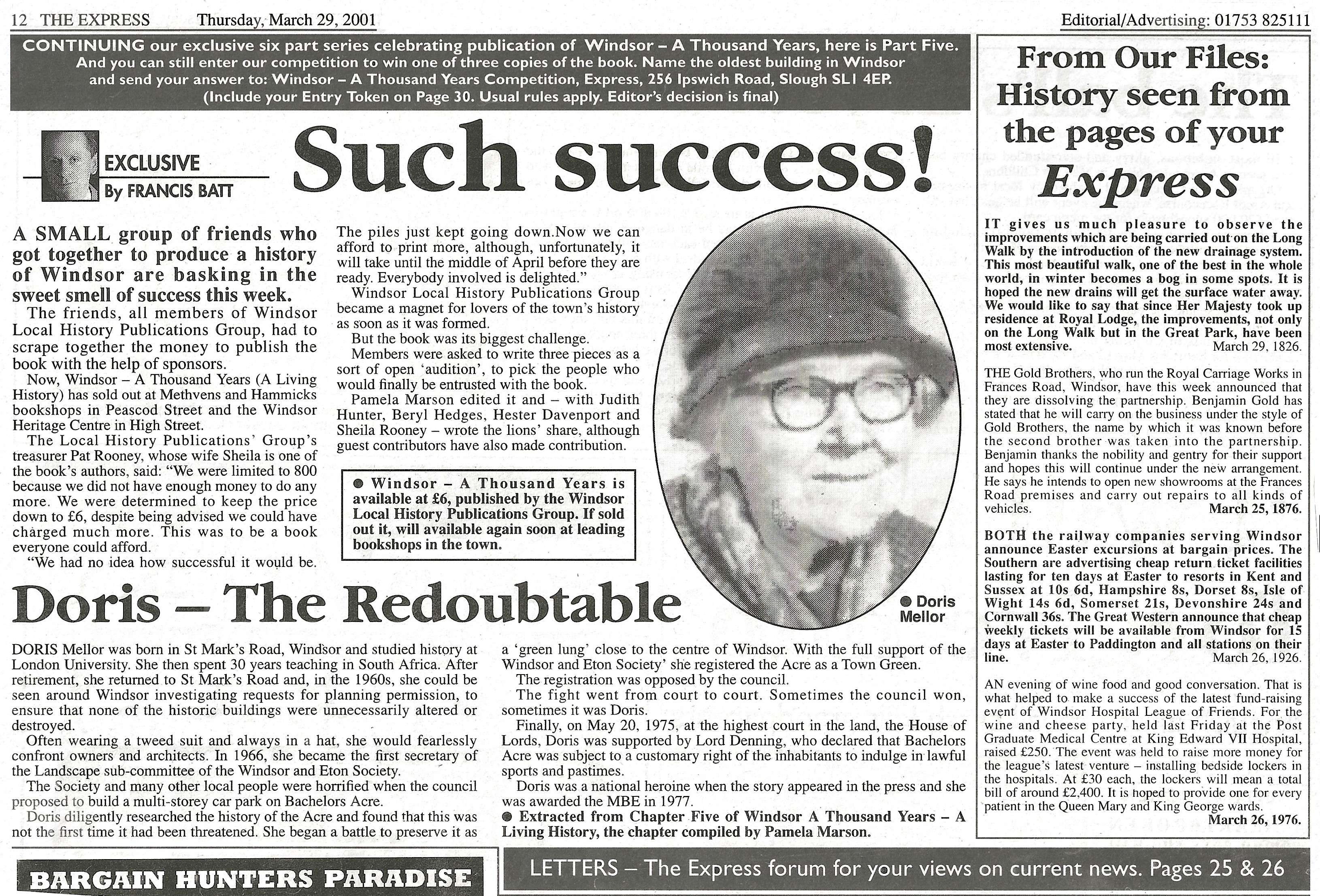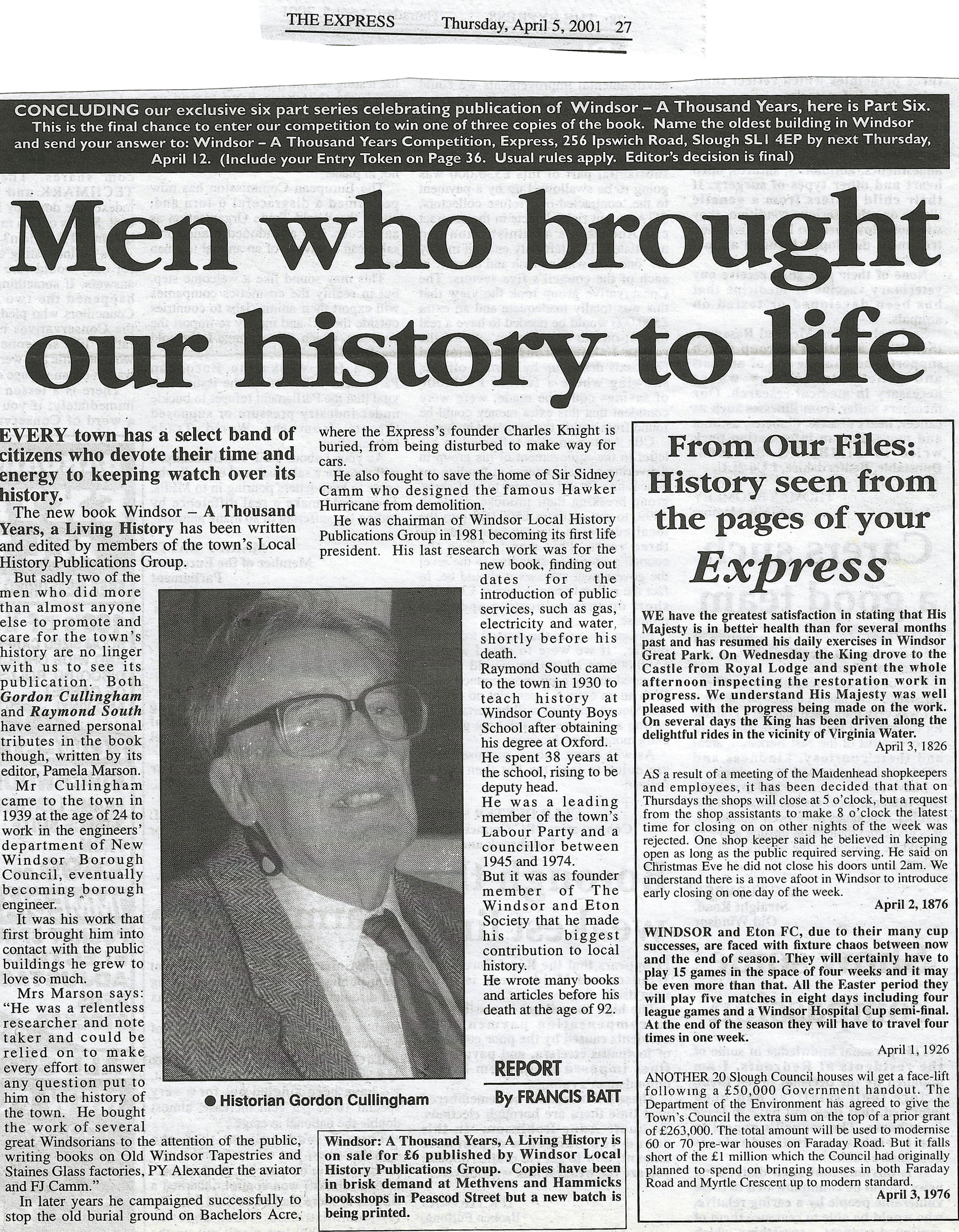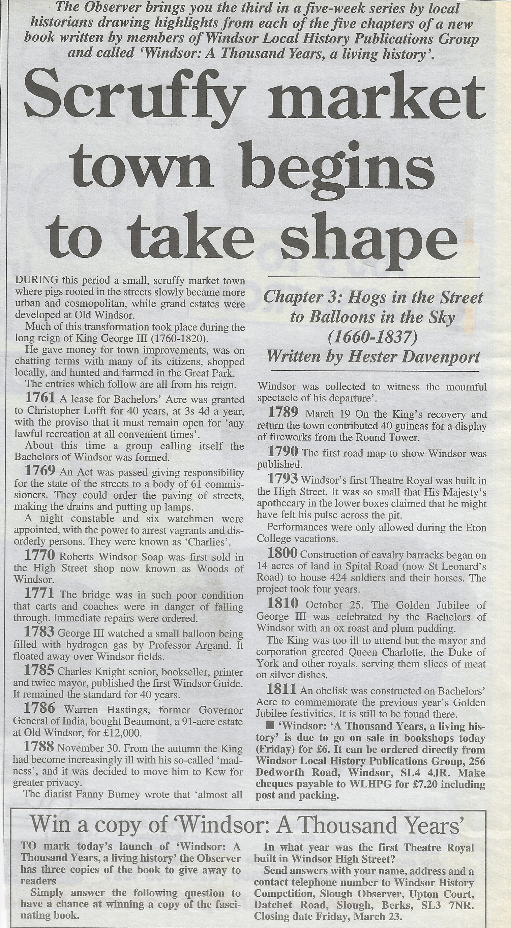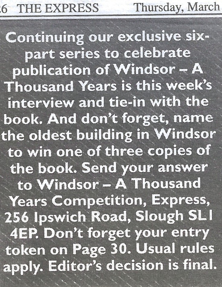 This page has been created from the WLHG scrapbook that remembers the successful launch of our book “Windsor: A Thousand Years”. Please just click on an image to expand it to make it more legible.