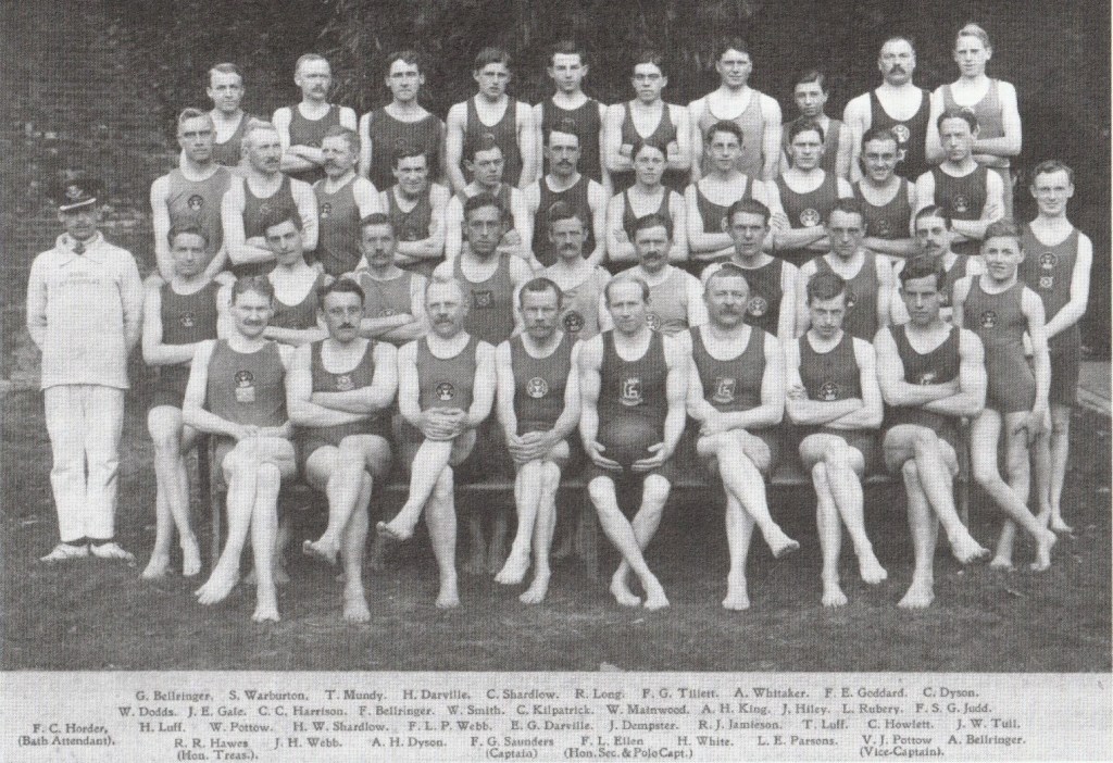 The Windsor Swimming Club was restarted in 1907 by my father FG Saunders, the pharmacist who had a shop at 41 St Leonard’s Road, when he came to live in Windsor. Fred Saunders had been a keen swimmer while living in Brighton and for many years he was Windsor Club Captain.